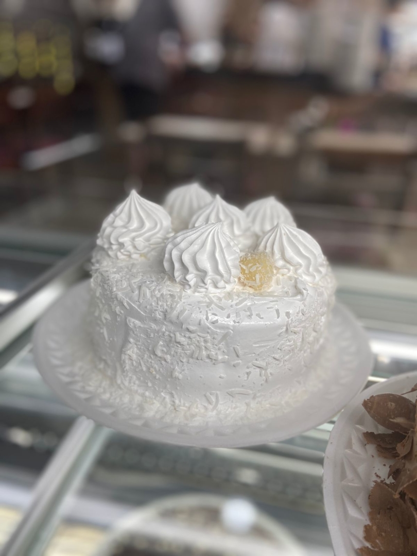 massa baunilha, recheio beijinho e cobertura de marshmallow
