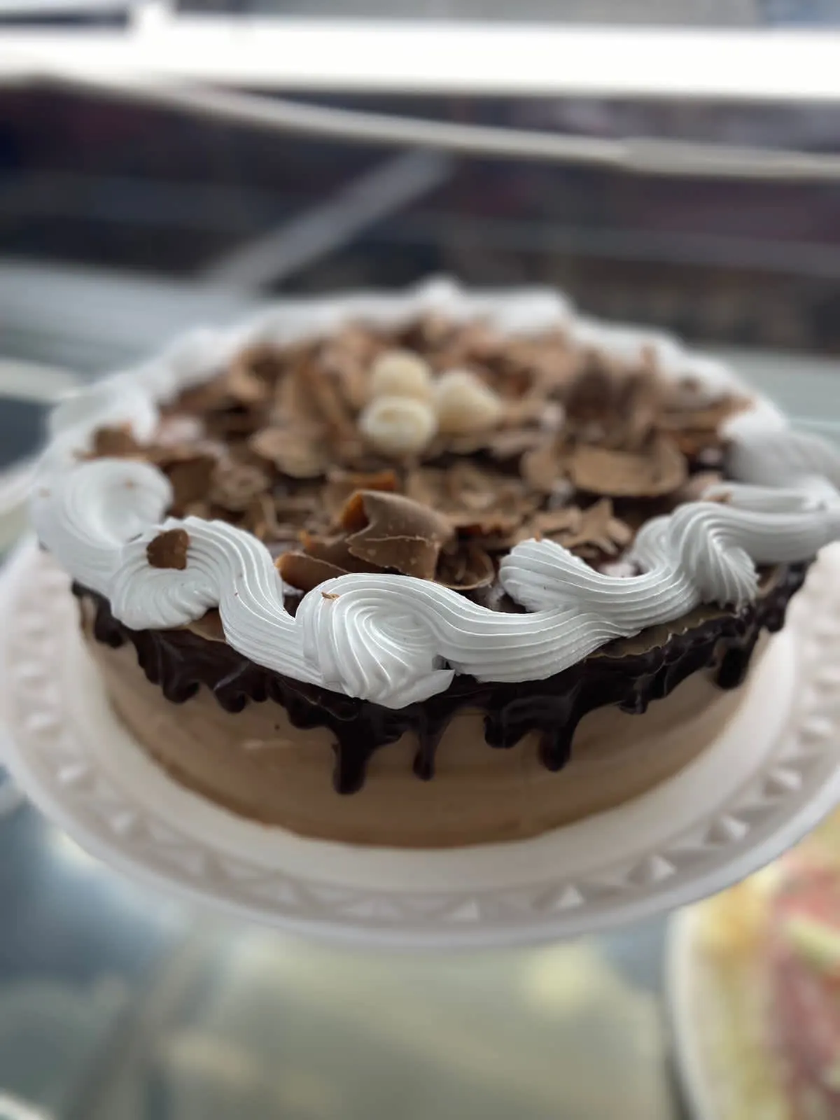 Bolo com recheio de trufa de chocolate com coco. Selecione a massa e cobertura que deseja.