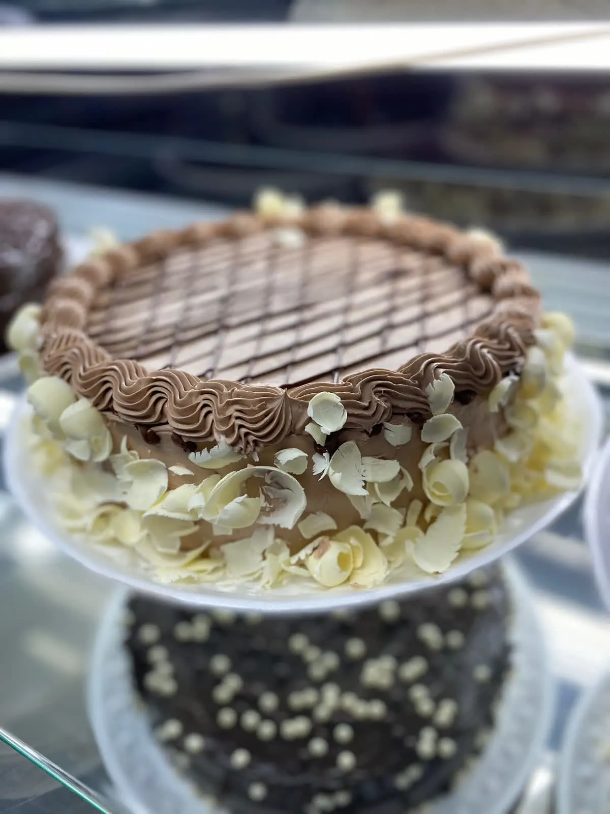 Bolo com recheio de brigadeiro branco com nozes picadas. Selecione a massa e a cobertura que deseja.