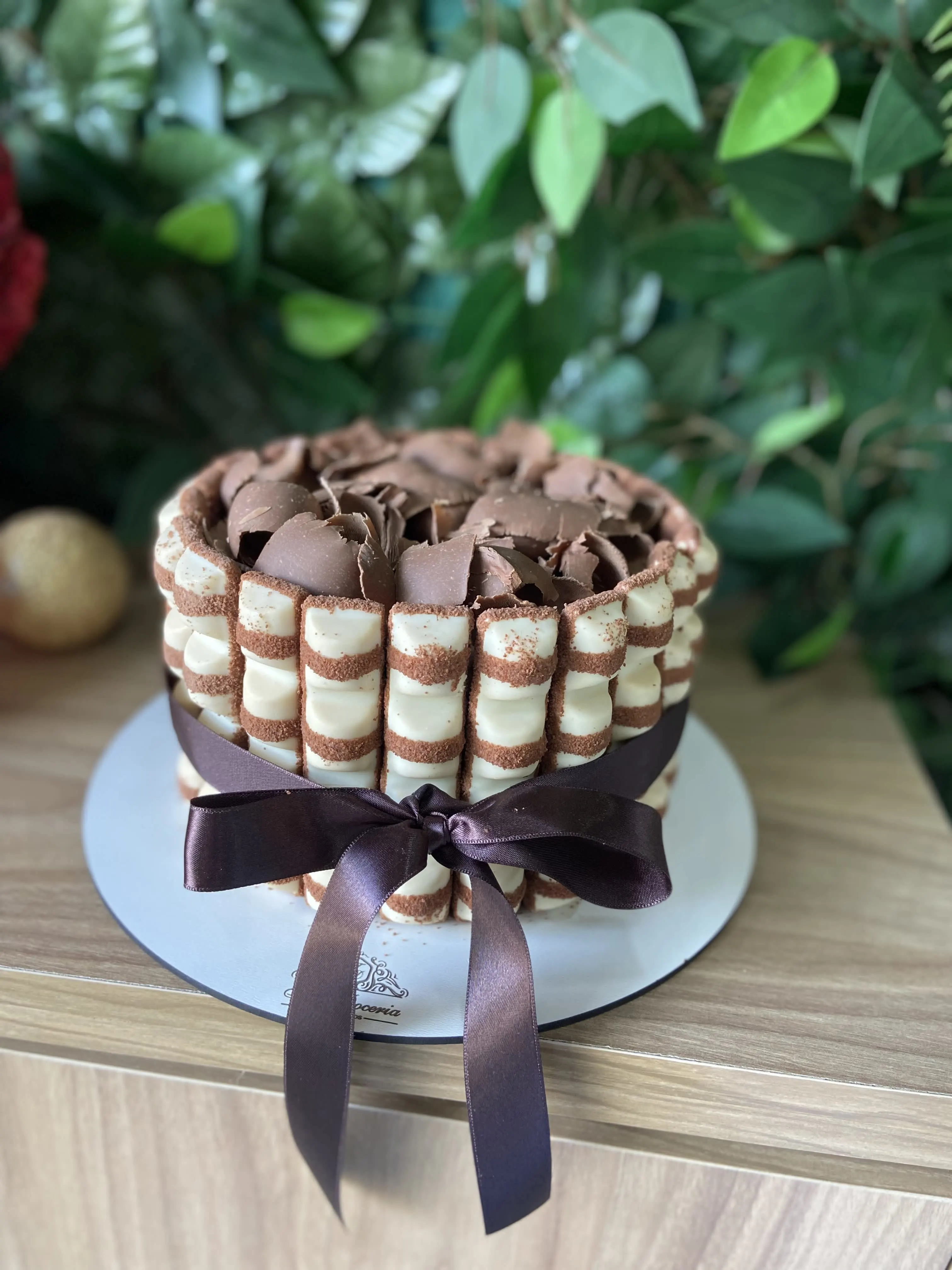 Bolo com recheio de leite ninho com Nutella. Selecione a massa e cobertura que deseja.