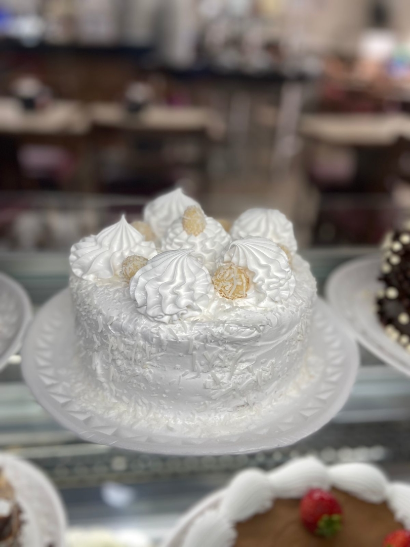 massa baunilha, recheio beijinho e cobertura de marshmallow