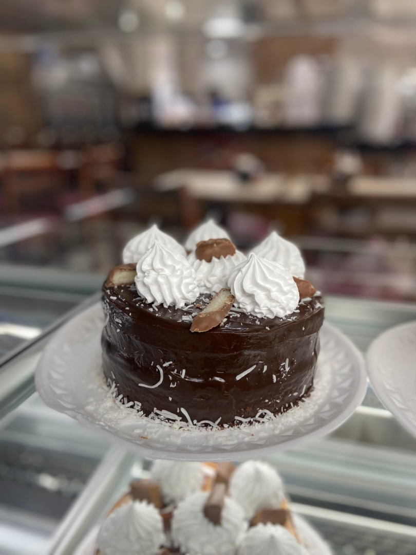 massa baunilha, recheio Ninho com Nutella e cobertura de chantilly de chocolate