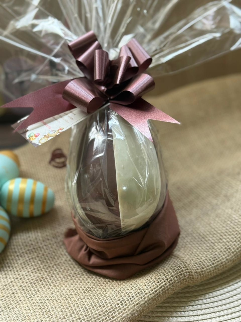 Ovo fechado e embalado com casca ao leite de chocolate nobre, recheado com o recheio de sua preferência (escolha a baixo). Peso do ovo 500g