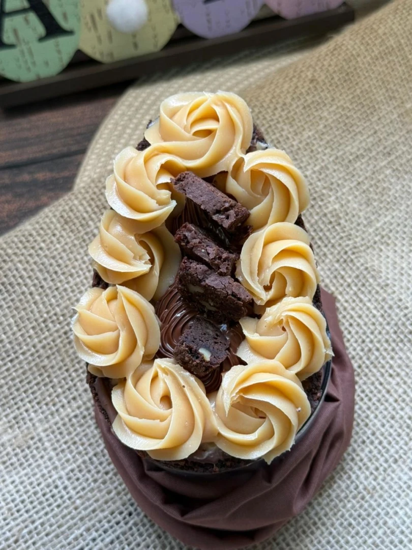 Casca do nosso brownie artesanal, muito brigadeiro de ninho, finalizado com Nutella e pedacinhos de brownie. Peso aproximado 390 gramas